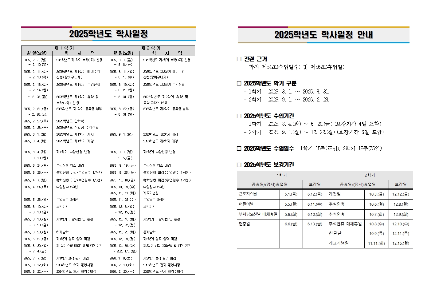 2025년 학사일정 알림
