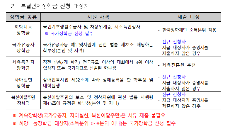 2026학년도 1학기 특별면제장학금 신청 안내