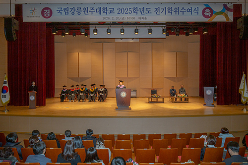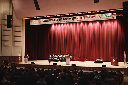 국립강릉원주대학교(총장 박덕영)는 2025학년도 전기 학위수여식을 2월 20일(금) 강릉캠퍼스와 원주캠퍼스에서 각각 개최했다. 강릉캠퍼스는 오후 2시 해람문화관, 원주캠퍼스는 오전 10시 태화홀에서 진행됐다.