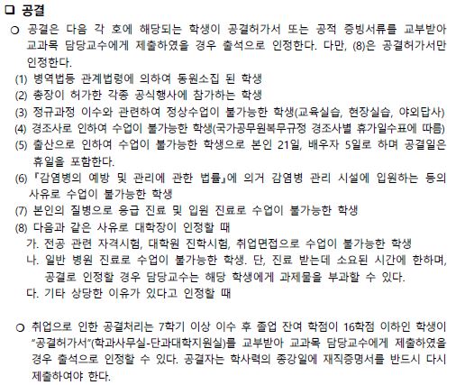 ※ 공결신청서는 아래의 명시된 사유일 경우에만 제출이 가능합니다.