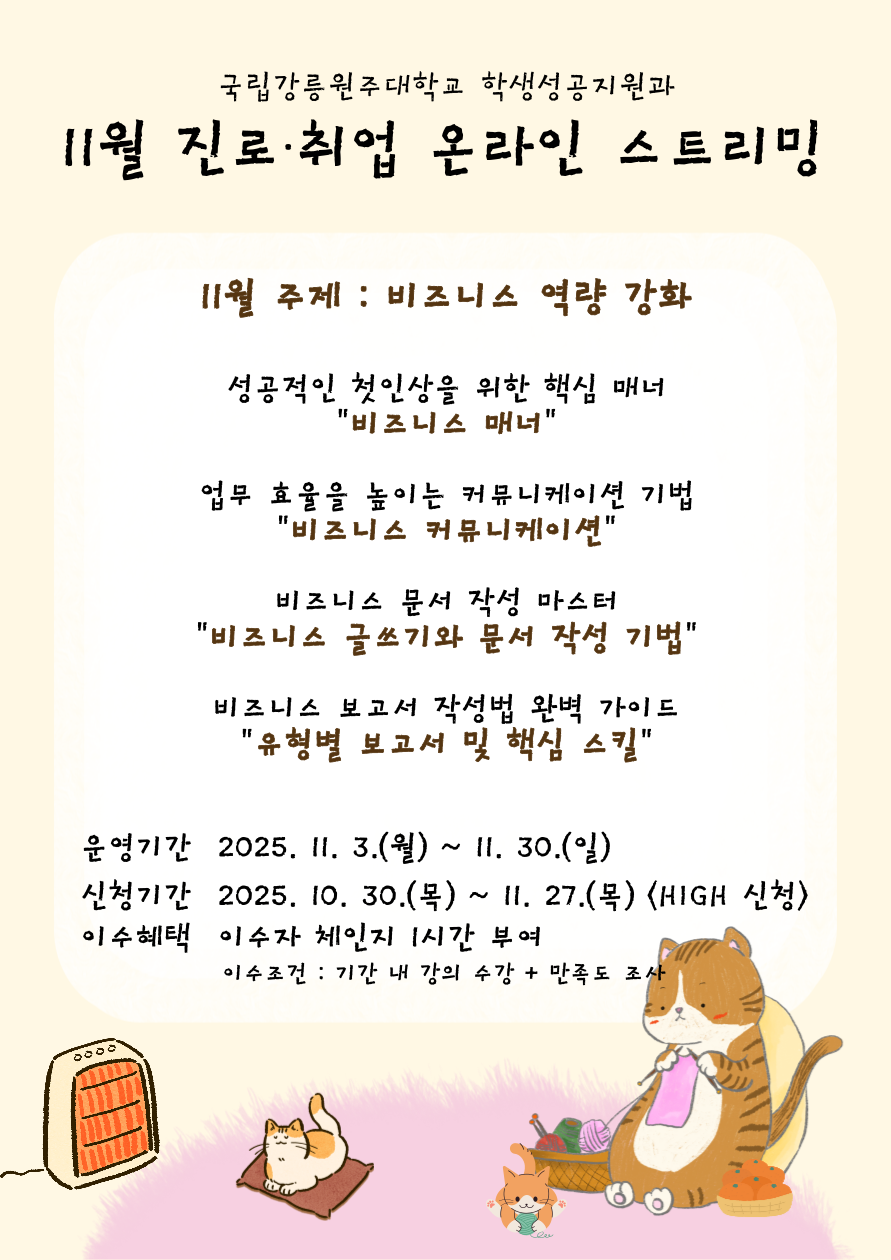 [학생성공지원과] 2025학년도 11월 진로·취업 온라인 스트리밍