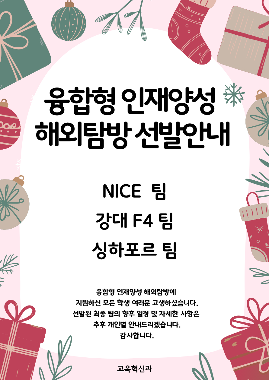 fnctId=bbs,fnctNo=1191 2025학년도 융합형 인재양성 해외탐방 최종선발 안내 작성일 2025.12.05 작성자 김경린 조회수 340 첨부파일 첨부파일이(가) 없습니다.
